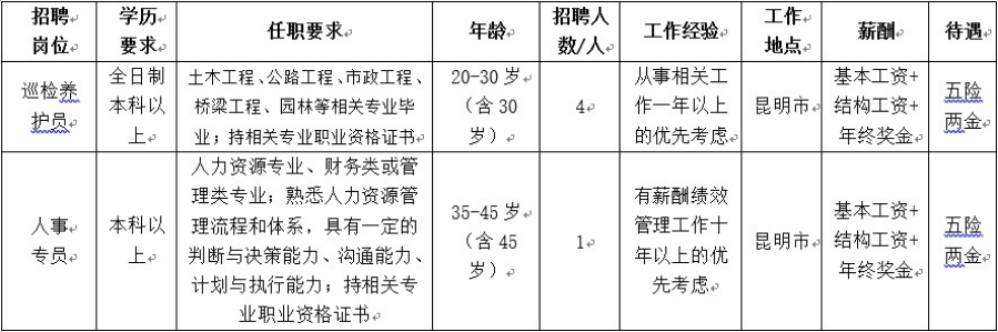 昆明橋隧管理有限公司關(guān)于2020年公開招聘公告