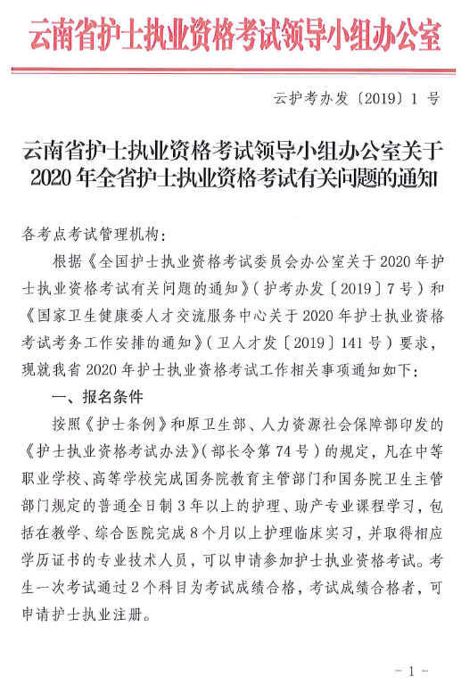 云南省關(guān)于2020年全省護士執(zhí)業(yè)資格考試有關(guān)問題的通知